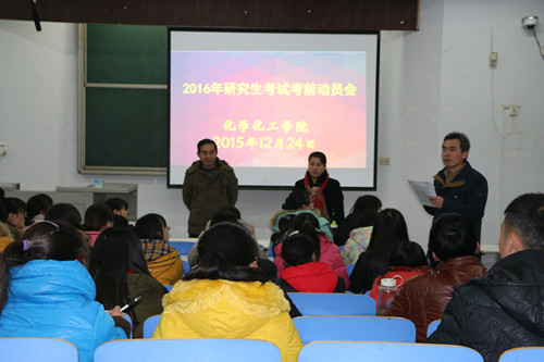 2016年硕士研究生考试在即,为保证考试前期的一些事项都能有条不紊的开展,并且为考生提供一些思想指导,世界杯官网特于12月24日下午在教四梯一开展了2016年硕士研究生考试考前动员会。本次座谈会由世界杯官网副院长骆定法教授担任主讲,党总支书记宋力主持,考研指导老师孙俊永以及150余名报考学生参加了此次座谈。