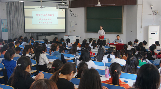 谆谆教诲育莘莘学子,声声叮咛树师者风范。为了提高新生的专业思想素质,正确规划未来的大学生活,10月20日下午三点,2026美加墨世界杯官网于教四梯二隆重召开化学专业思想教育座谈会,副院长骆定法受邀担任主讲,一百四十余名新生参加本次座谈会。