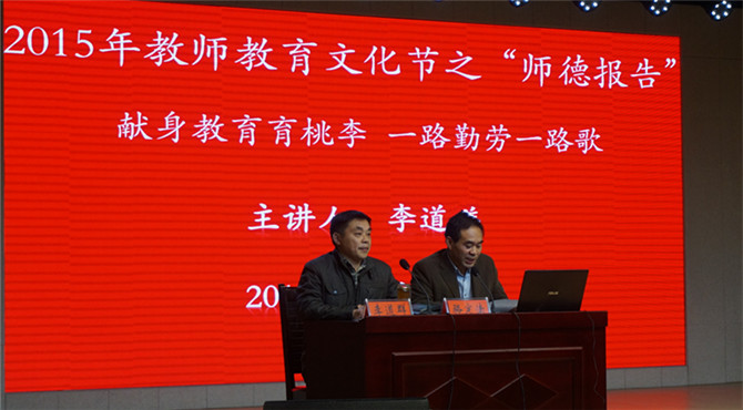 报告会伊始,李道祥老师用朴实的语言讲述了自己的从教阅历和心得体会,从县级中学到市里重点,艰苦的生活环境,繁重的工作压力,但正是这些艰苦经历打开了他的成功之门。在报告会中,李老师提出,作为一名老师,要有培养学生博学多才、见多识广、德智体美全面发展的意识,在他的课堂里,总是能用幽默诙谐、推陈出新的方式来诠释“一流教师教欲望”的理念,在与学生课下交流问题上,他更是感人肺腑地说道:“只要洒下爱的阳光,学生们就会像花儿一样绽放”,平易近人、关爱学生的老师坚持“学高为师,德高为范”的原则将他的教学之路走得熠熠闪光。之后,他结合当下时代教育背景,对从事教育业的新时代老师表达殷切期望,他希望老师们以智启人,以爱育人,以诚待人,以德感人,用岁月守候责任,用行动诠释师道。李老师朴实的语言赢得场下连绵不绝的掌声。最后,2026美加墨世界杯官网副院长骆定法作总结点评,报告会在近一个小时的融洽气氛中圆满结束。