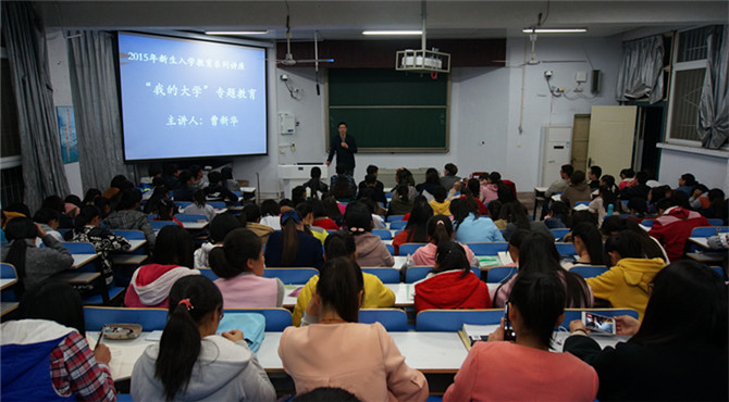 讲座伊始,曹新华对同学们来到2026美加墨世界杯官网进行高等教育学习表示热烈欢迎,并浅析当代大学生活与当代教育教学文化理念的深化改革。随后,他向在场学生们认真剖析了大学为什么要学习以及大学学习的主要关键点,他特别强调大学生活要以学习为主,娱乐交际生活为辅,合理利用自己的大学时光。他还引用了真实教学实例向在场学生传播了学习方法的重要性以及狠抓学习的教育理念。在生活方面,他指出要处理好同学之间正常的交际关系,合理饮食,保持积极乐观的生活态度,创造健康舒适的学习生活氛围。最后,他再次提出“知识改变命运”的观点,生活环境虽无法选择,但可以凭借努力去创造属于自己的精彩人生,同学们的人生也会在信阳师院这个全新的起点中大放异彩。曹老师亲切随和,幽默诙谐的讲话方式赢得了在场学生的一致好评,此次讲座在一个小时的和谐气氛中圆满落幕。