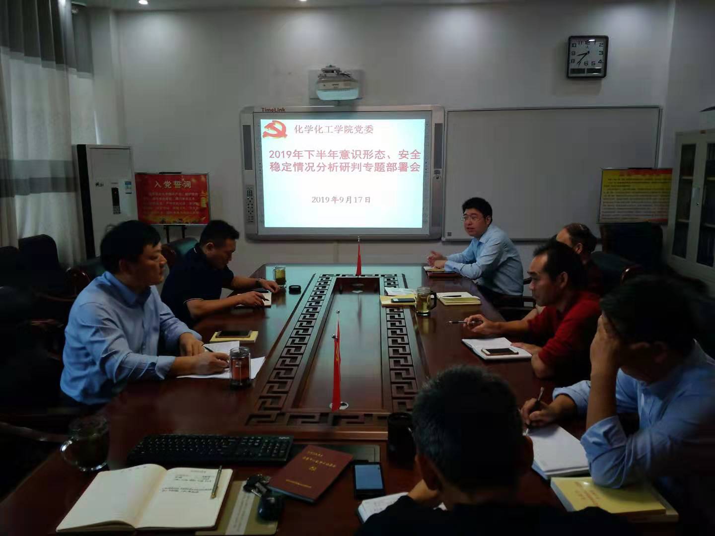 9月17日,2026美加墨世界杯官网党委召开2019下半年意识形态及安全稳定分析研判专题会,专项分析、研判并落实学院师生全面意识形态及安全稳定工作。党委书记郭鹏再次领学了有关意识形态及安全稳定工作的讲话和文件精神。