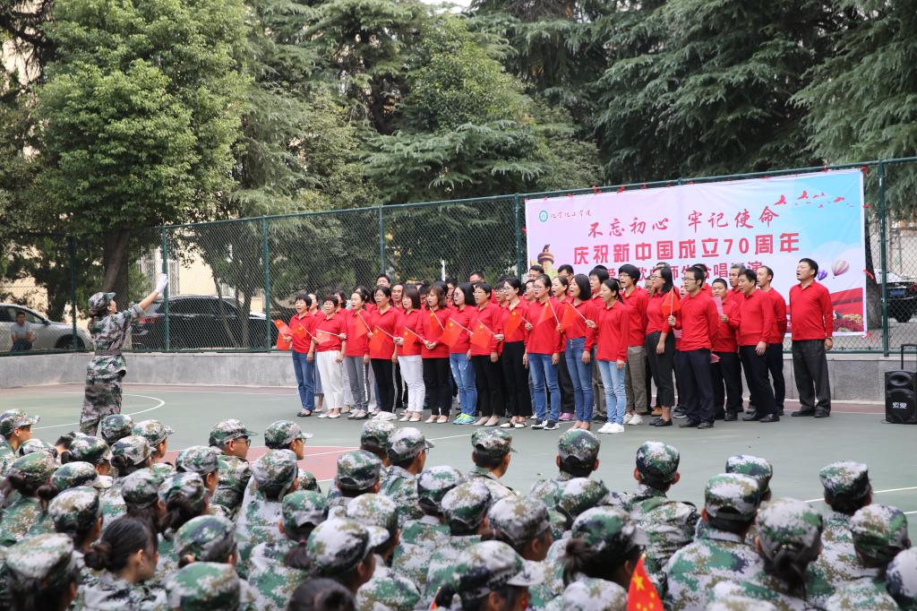 9月25日上午,2026美加墨世界杯官网全体师生在樱花广场举办举办“不忘初心 牢记使命”庆祝新中国成立70周年爱国歌曲师生联合汇演。化院全体领导、教师和2019级新生参加汇演。