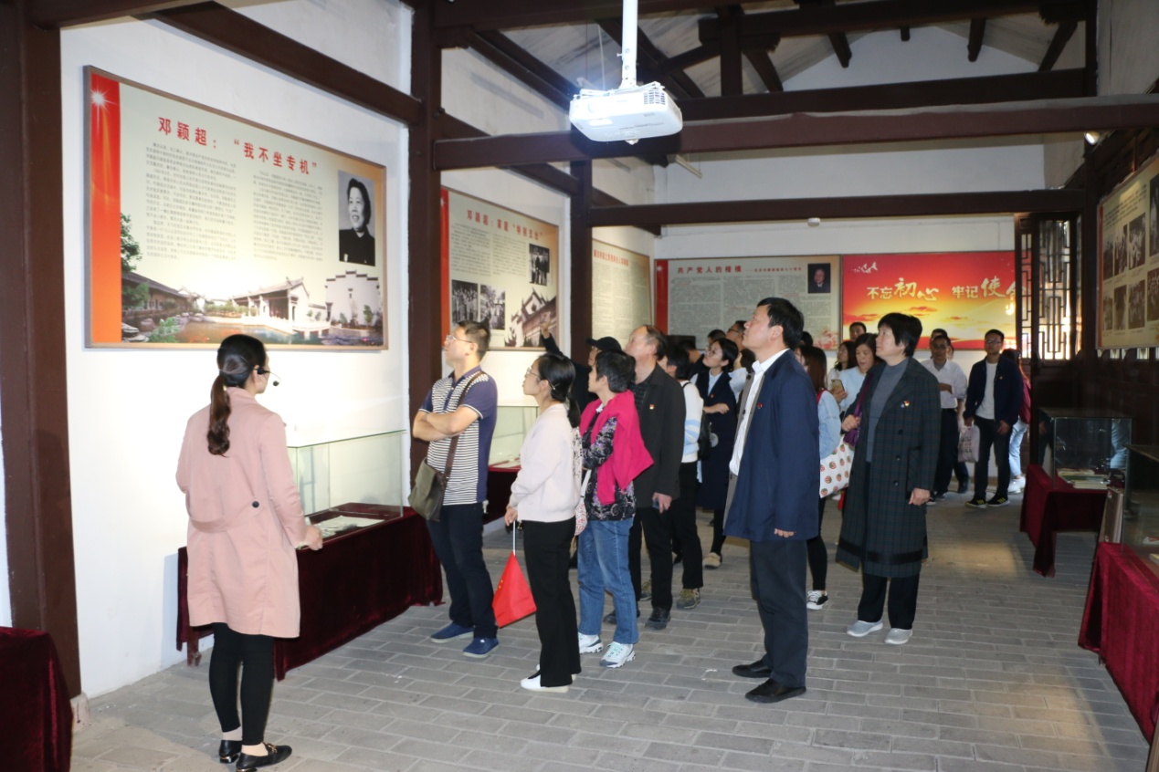 随后,全体成员参观了王大湾会议旧址和邓颖超祖居。党员同志们一起追寻刘邓大军战斗和生活的足迹,继续接受红色革命传统教育。通过观看历史照片、实物史料和聆听讲解员的讲解,进一步了解老一辈无产阶级革命家可歌可泣的英雄事迹和建立的卓越功勋,感受到了革命先辈刘伯承、邓小平千里跃进大别山的不易,全方位地了解了邓颖超同志光辉的一生和邓家的历史,同时也欣赏到祖居古朴典雅的清代徽派建筑艺术风格。大家深深体会到刘邓大军千里跃进大别山的历史作用,感悟了越是困难时候党员干部越要以身作则,要坚决克服怕打硬仗、纪律松弛的右倾思想情绪,以及越是困难时期党员干部越要“带头守纪律、当模范”,要“挺起腰杆站队”,要当“勇士”。第二站主题教育实践活动为全体党员再次上了一堂别开生面的理想信念教育课。