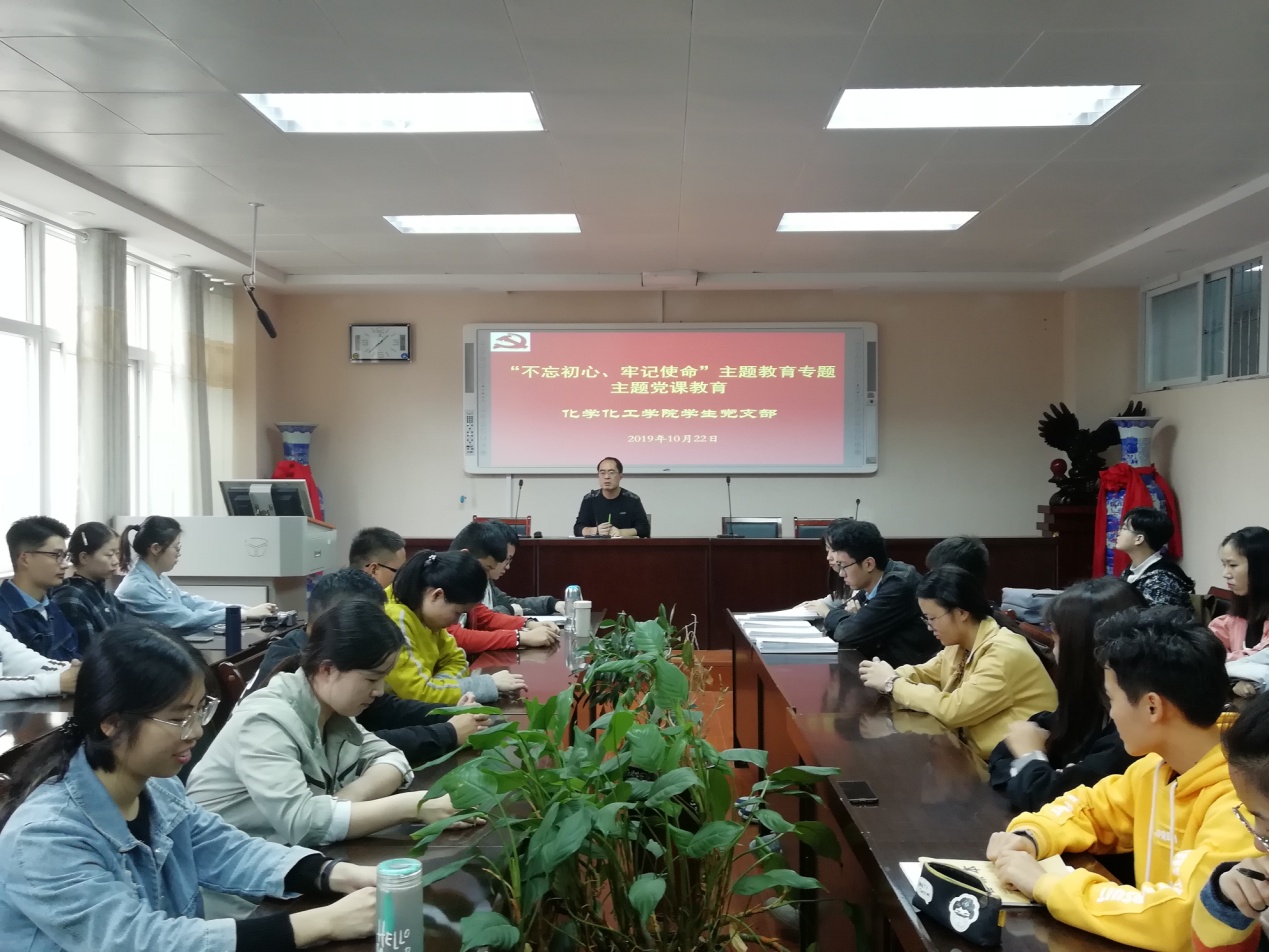 10月22日,2026美加墨世界杯官网学生支部在实验楼407会议室开讲“不忘初心,牢记使命”主题教育专题党课。2026美加墨世界杯官网党委专职组织员、学生党支部书记冷向宇为学生党员上专题党课。