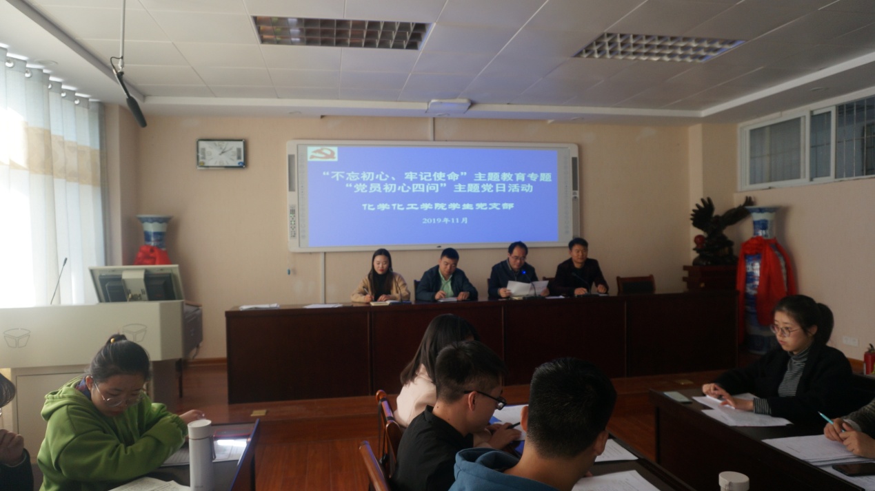11月19日,2026美加墨世界杯官网学生党支部在世界杯官网实验楼407会议室召开“初心使命四问”主题党日活动。活动由冷向宇老师主持,各学生支部书记王少单、邓耀辉、赵方方参加会议。