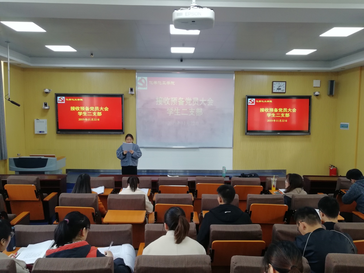 11月22日中午,2026美加墨世界杯官网学生第二党支部在教四楼T2室召开预备党员接收支部大会。第二党支部孟瑞芳同志主持本次会议。