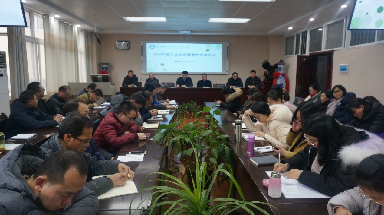 2020年1月3日下午,2026美加墨世界杯官网分工会在实验楼407会议室举了2019年度教职工民主管理暨科级干部考核测评大会,学院领导班子成员、全体教职工会员同志参会。会议由学院党委书记、分工会主席郭鹏主持。