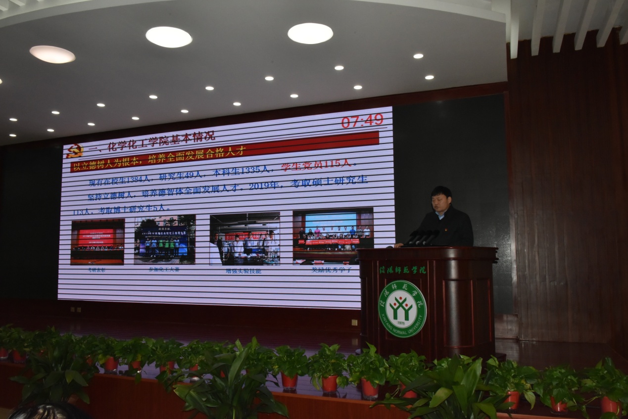郭鹏坚持“抓好党建是本质,抓不好党建是失职,不抓党建不称职”理念,把准政治方向,落实立德树人,尽心尽力、尽职尽责,深入推进全面从严治党向基层支部延伸,以党建推动事业发展。他从六个方面进行述职汇报,一、学院基本情况;二、“不忘初心、牢记使命”主题教育情况;三、巡视整改情况;四、主要做法及工作创新;五、问题及原因分析;六、工作计划和努力方向。郭鹏表示,在校党委的正确领导下,学院分党委准确把握新时期新形势工作重点,以习近平新时代中国特色社会主义思想为指导,全面学习贯彻党的十九大、十九届二中三中四中全会精神,认真学习贯彻落实习近平总书记系列重要讲话,特别是注重抓好领会贯彻落实习近平总书记视察河南重要讲话精神,带头示范,全面加强党的政治建设,坚持党要管党,全面从严治党,坚持党是领导一切的,以增强基层党组织的组织力,提升创造力、凝聚力和战斗力为目标,加大“两化一创”创建力度,抓好“强基引领”三年行动,大抓基层组织建设,重视基层基础,持续开展“两学一做”制度化常态化,严肃党内政治生活,严格落实“三会一课”,严格党员教育管理,开展党员争先创优,开拓创新,踏实工作,有力提升了党建,有效促进了发展。