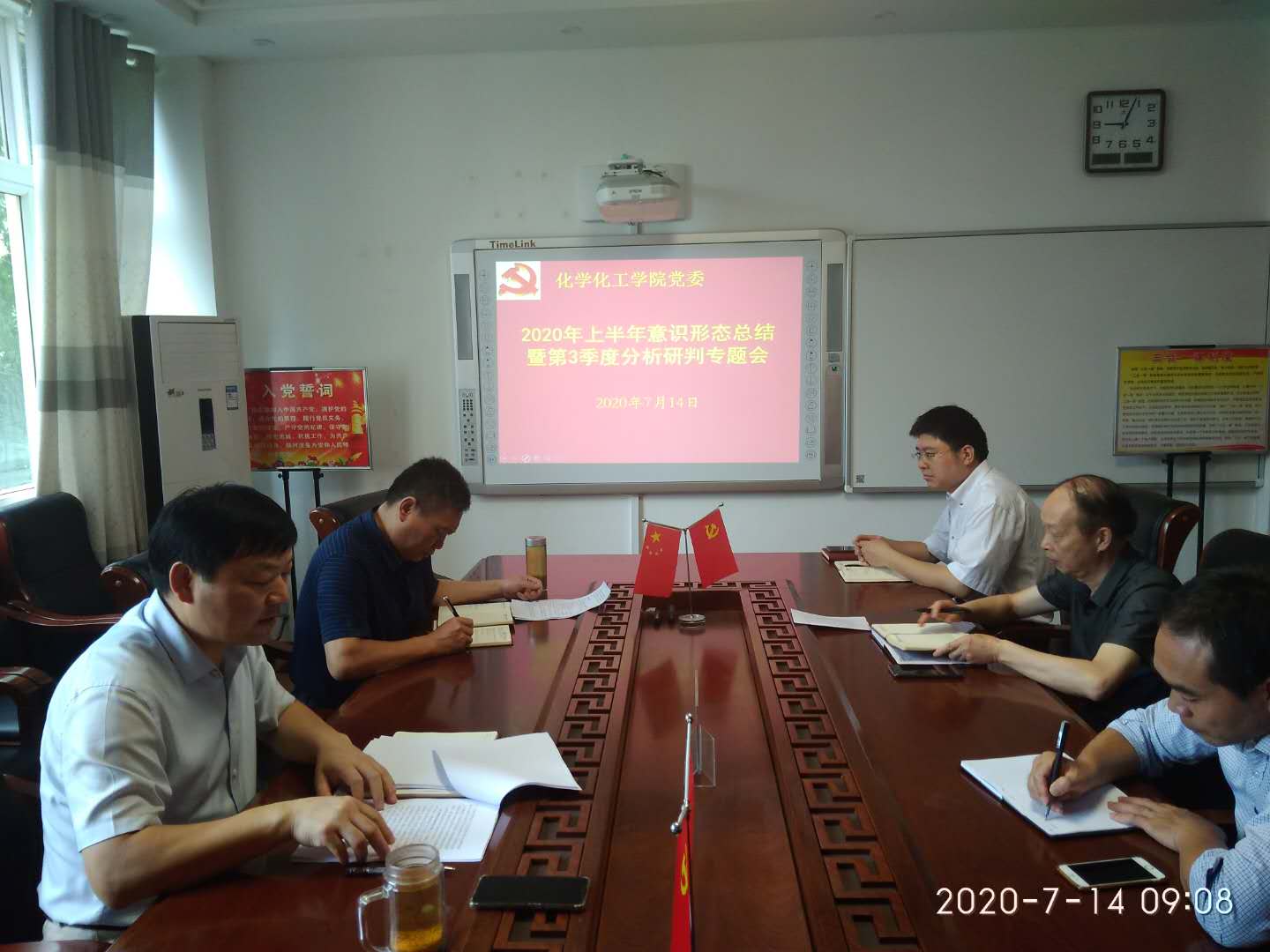 郭鹏再次领学《关于信阳师范学院党委(党总支、直属党支部)意识形态工作责任制实施细则的通知》《分党委(党总支、直属党支部)落实意识形态工作责任制考核办法(试行)》等文件,并从意识形态工作总体情况、存在问题和下一步工作打算等方面进行梳理小结,对2020年上半年意识形态工作进行回顾总结,与会人员进行深入细致的讨论,并对学院本年度第3季度意识形态工作重点任务进行分析研判,特别是针对暑假期间师生各领域意识形态工作、安全稳定工作进行了认真分析和研究部署。