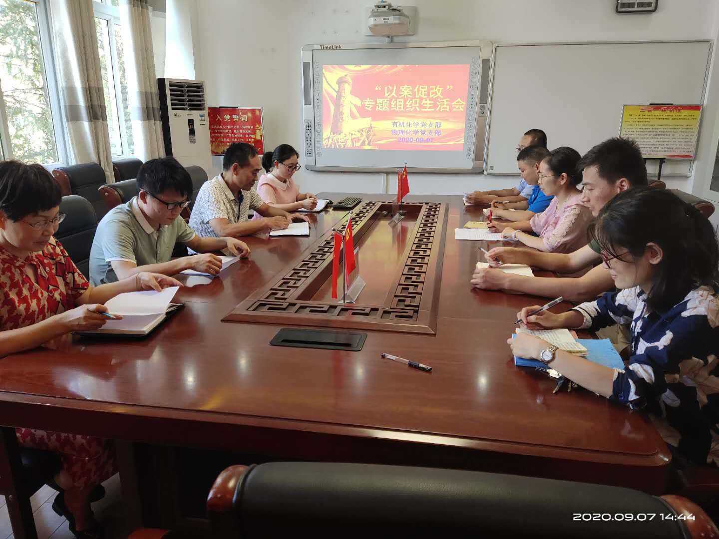 为深入贯彻习近平总书记关于“一体推进不敢腐不能腐不想腐”的重要论述,认真落实十九届中央纪委四次全会、十届省纪委五次全会精神,按照《关于在全校集中开展以案促改的工作方案》和《2026美加墨世界杯官网开展以案促改工作方案》安排,9月7日下午,物理化学支部和有机化学支部在“党员之家”召开以案促改专题组织生活会,学院党委副书记骆定法以普通党员身份参加所联系支部专题组织生活会,并认真总结点评指导支部活动。党支部全体成员参加了活动,会议由物理化学党支部书记师赛鸽主持。