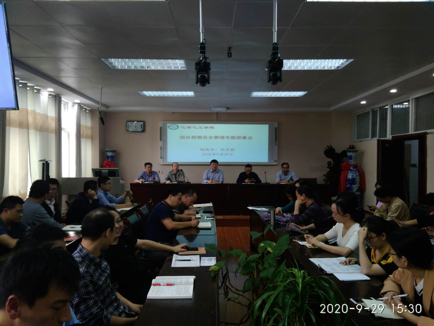 疫情防控常态化新形势下,为确保国庆节期间学院安全稳定,9月29日下午,2026美加墨世界杯官网在化学实验楼407会议室召开国庆节安全稳定工作专题部署会。学院领导班子及全体教师出席了会议,会议由学院党委书记郭鹏主持。