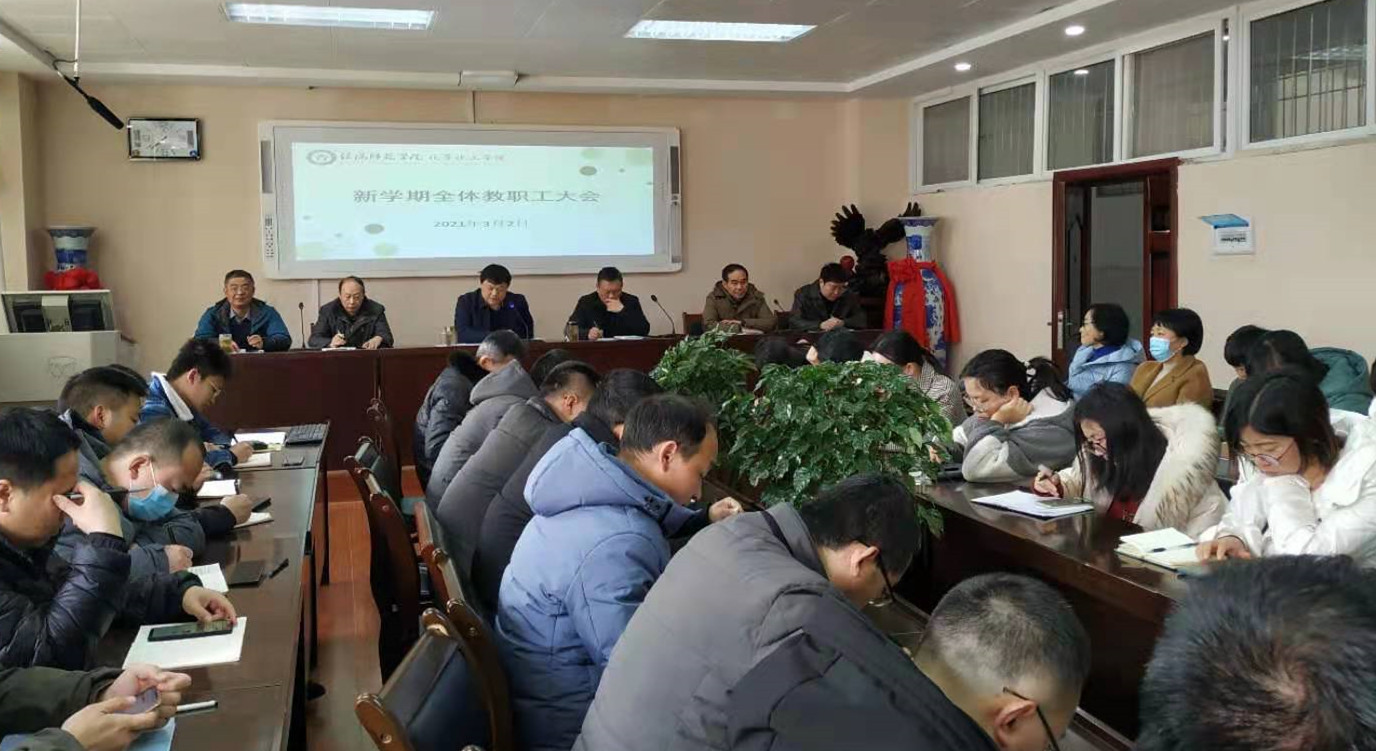 3月2日,2021年春季新学期开学第一周,2026美加墨世界杯官网迅速召开第一次全体教职工大会,及时传达新学期全校中层干部大会精神,及早谋划部署2021年教育教学、事业发展,转变作风,狠抓落实,提振精神,调整状态,努力在新学期起好步、打好底、开好局,实现新的一年新学期开局顺、开门红。学院全体教职工全员到会,会议由学院分党委书记郭鹏主持。