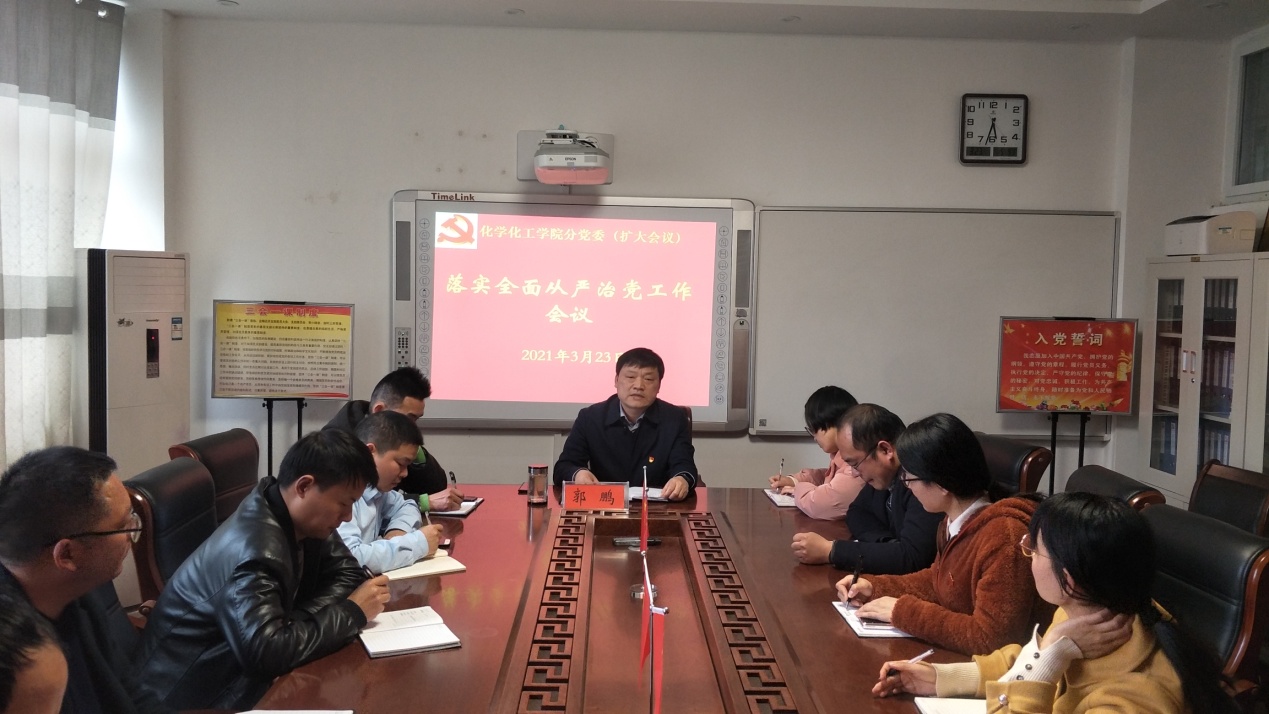 为深入学习贯彻十九届中央纪委五次全会、十届省纪委六次全会和教育系统全面从严治党工作视频会议、校党委2021年全面从严治党工作会议精神,3月24日下午5点,学校理科楼全校中层干部大会后,2026美加墨世界杯官网迅速召开分党委扩大会议,及时学习传达贯彻学校全面从严治党工作大会精神。学院分党委书记郭鹏主持并讲话,所属14个师生党支部书记、副书记全体同志参加会议。