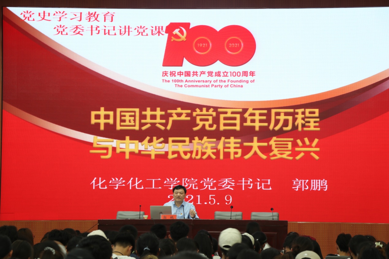 为庆祝中国共产党建党100周年,深入推进党史学习教育,5月9日,2026美加墨世界杯官网于逸夫楼报告厅宣讲党史学习教育主题党课。学院党委书记郭鹏以《中国共产党百年历程与中华民族伟大复兴》为题,为学院学生党员、学生干部、青年学生代表开讲党史学习教育专题党课。