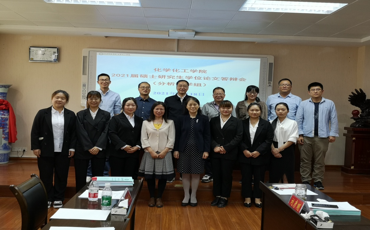 2021届毕业生共有18名研究生参加硕士学位论文答辩,其中学术型硕士方向共12人(分析化学方向6人、物理化学及无机化学方向6人),学科教学(化学)专业硕士6人,答辩委员会分成3个小组进行,123组的答辩委员会主席分别是中山大学李攻科教授、扬州大学雪怀国教授、华中师范大学王世存教授;其他校外答辩委员会专家有中山大学胡玉玲教授、扬州大学庞欢教授;校内答辩委员会专家有刘彦明教授、黄克靖教授、甘甜教授、王海波副教授、曹俊涛副教授,井强山教授、刘鹏教授、樊阳教授、曹新华教授、曾小兰副教授,刘德汞教授、王玲玲教授、郭鹏副教授、唐林副教授等教师组成。答辩会上,答辩学生在规定时间内从研究背景、论文框架、研究方法、结论以及创新点等方面分别汇报各自学位论文的主要研究内容和工作创新点,汇报完毕后逐一回答评委专家提出的问题。答辩评委根据论文情况提出修改意见,为每位研究生进行评分,并填写答辩表决票。