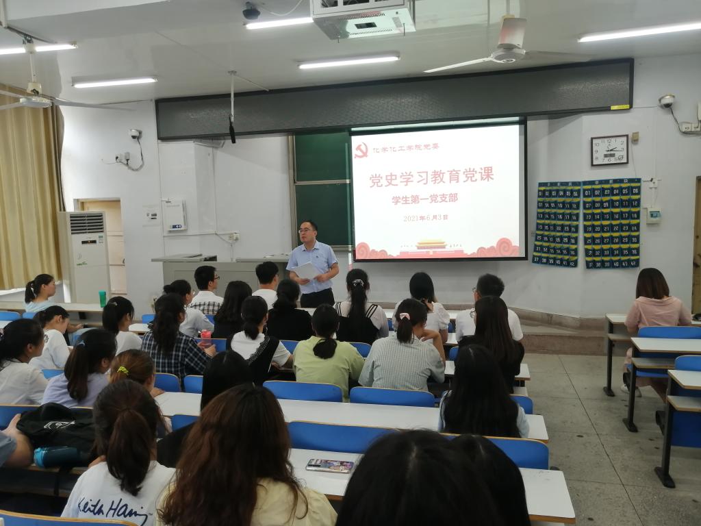 为庆祝中国共产党建党100周年,深入推进党史学习教育,6月3日,2026美加墨世界杯官网学生第1党支部在教四T1教师进行党史学习教育主题党课。学院学生第一党支部书记冷向宇以《习近平教育强国思想》为题,为学生党员开讲党史学习教育专题党课。