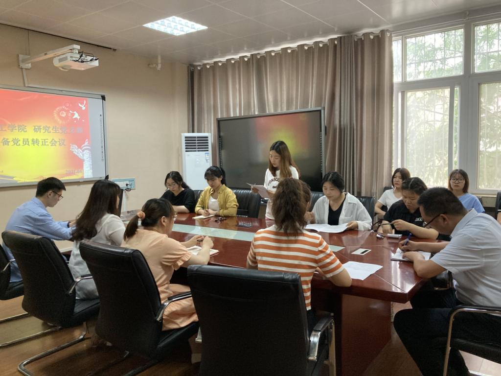 为进一步扩大党员队伍,严格履行党章规定的预备党员转正手续,2021年6月9日,2026美加墨世界杯官网研究生支部在实验楼210室召开预备党员转正大会,研究生支部7名正式党员和9名预备党员参加本次大会,其中有2名预备党员转为正式党员。
