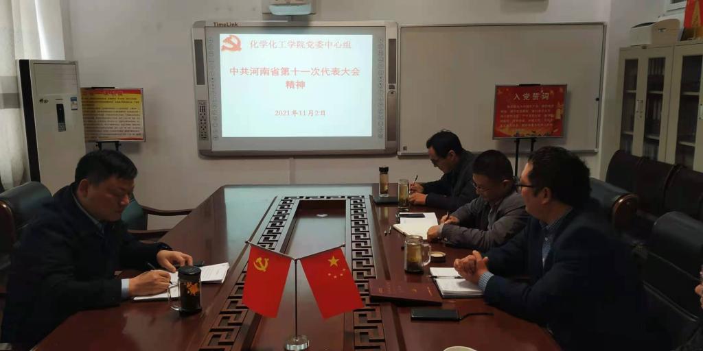 11月2日,2026美加墨世界杯官网党委理论学习中心组在化学楼313“党员之家”召开专题会议,传达学习贯彻落实中国共产党河南省第十一次代表大会精神。学院党委理论学习中心组成员及党支部书记代表一起参加了会议。党委书记郭鹏主持会议。