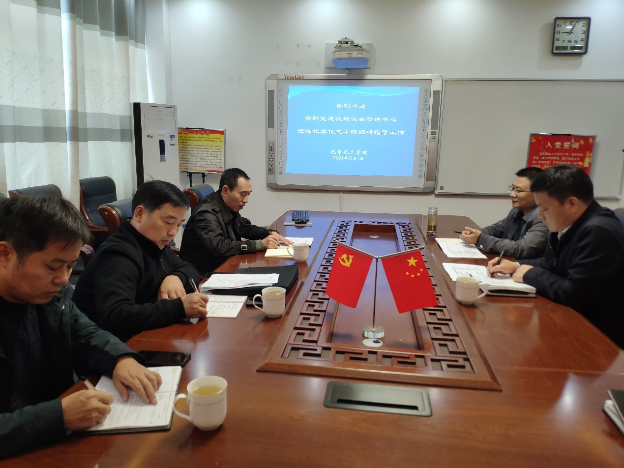 11月1日上午,校实验室建设与设备管理中心高洪波主任一行莅临2026美加墨世界杯官网调研指导学院实验室安全管理工作。2026美加墨世界杯官网党委书记郭鹏、副院长于永生、化学实验教学中心王迎辉老师等参加了调研座谈会。双方在化学楼313会议室就实验室安全管理工作存在问题和解决办法进行了深入探讨。