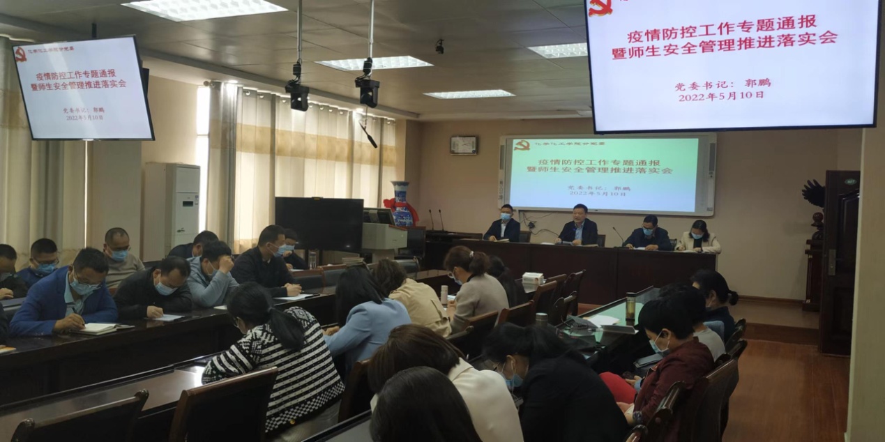 5月10日,在实验楼407会议室,2026美加墨世界杯官网召开疫情防控工作专题部署暨安全管理推进会。2026美加墨世界杯官网全体教职工参加会议,会议由学院党委书记郭鹏主持。