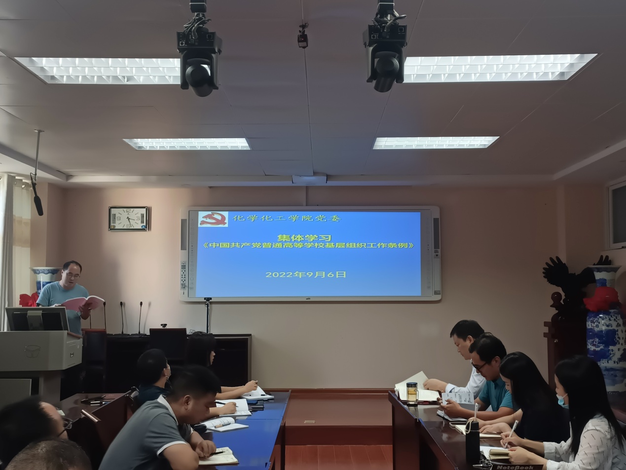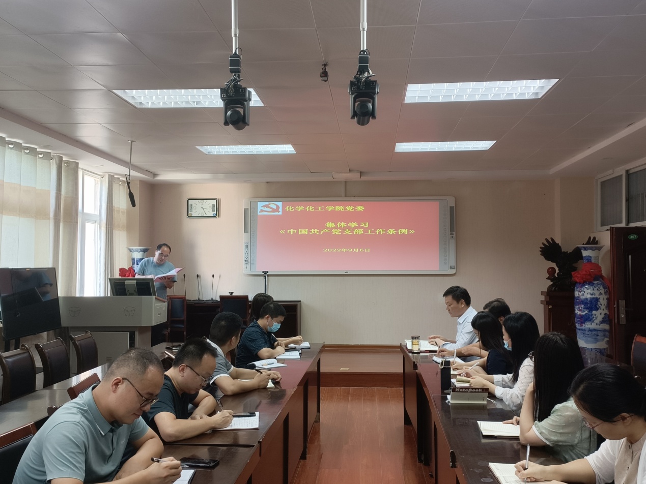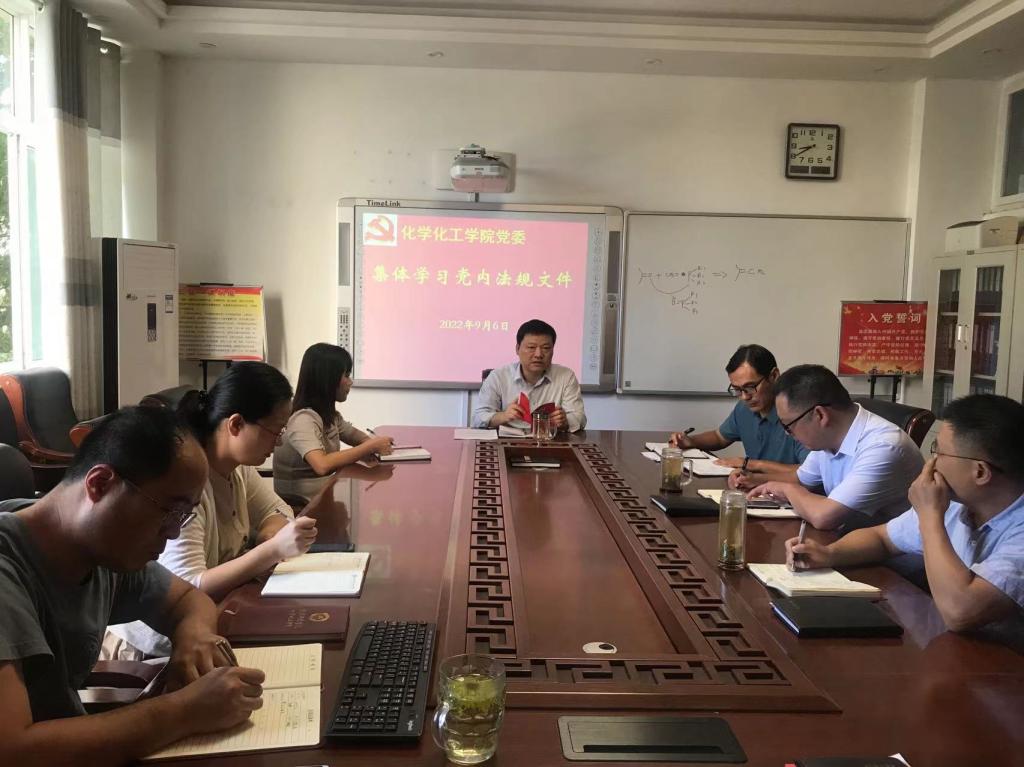 9月6日,2026美加墨世界杯官网党组织在化学实验楼会议室集体学习党内法规,党委书记郭鹏、副书记曲剧、副院长曹俊涛、王红军、于永生及党支部书记参加扩大学习会议。学习活动由郭鹏主持。