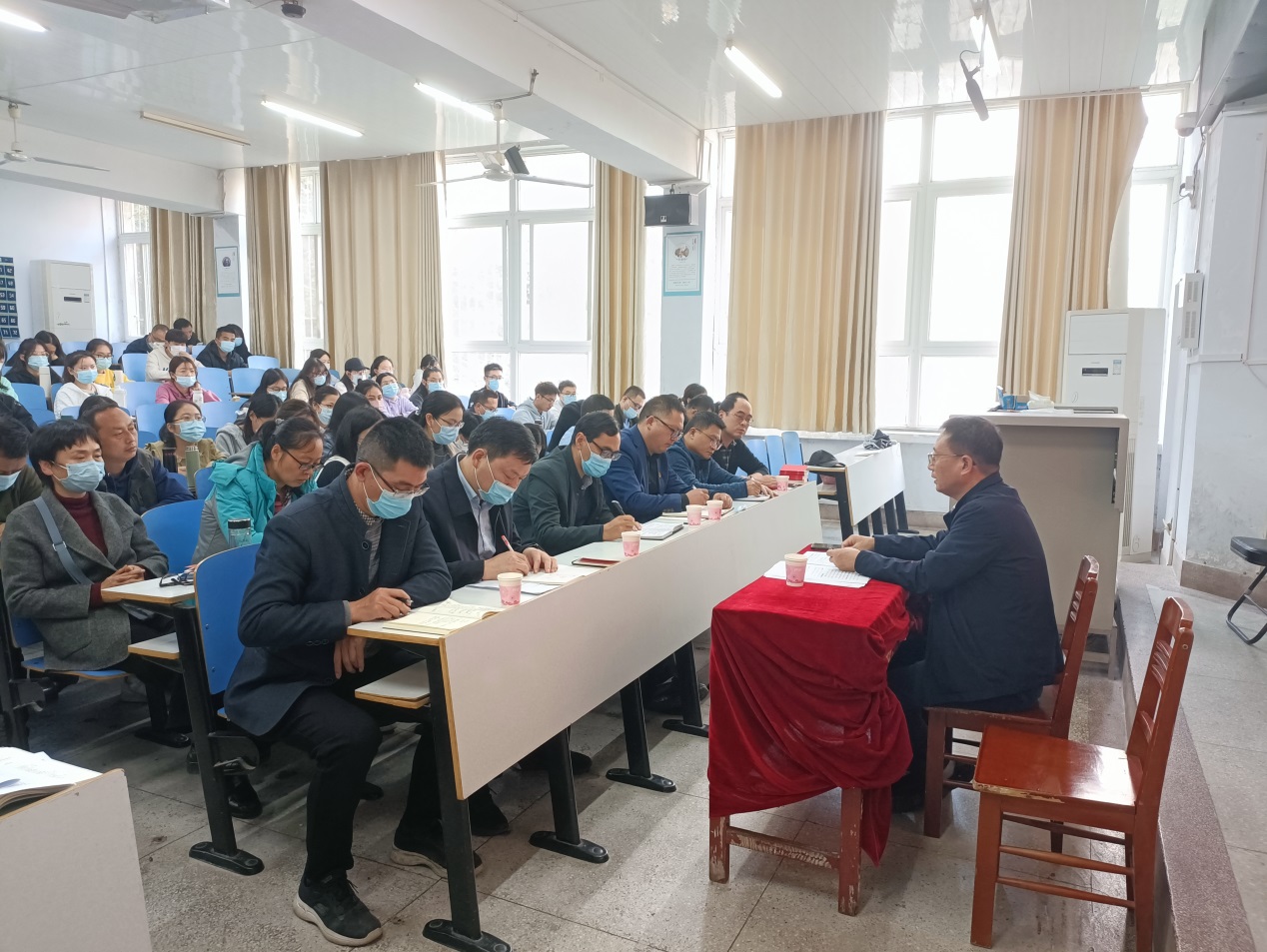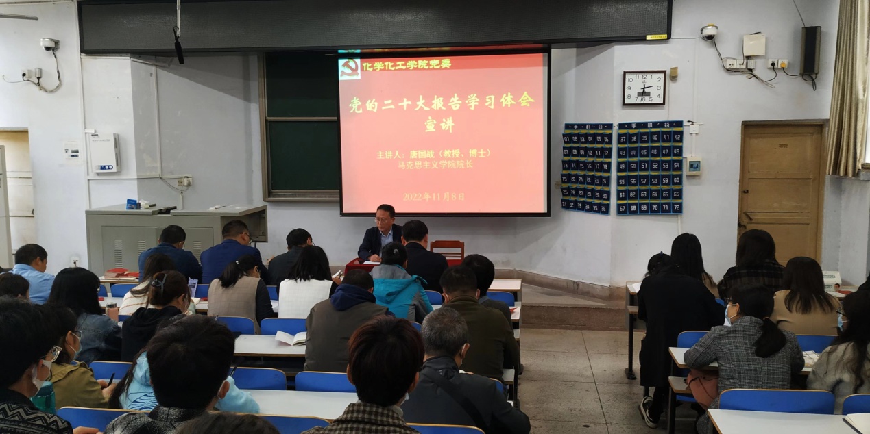 11月8日,2026美加墨世界杯官网举办学习宣传贯彻党的二十大精神辅导报告会,邀请马克思主义学院院长唐国战教授作报告。2026美加墨世界杯官网党委书记郭鹏主持报告会,学院全体师生党员参加报告会。
