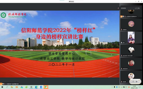 “不让一个学生因家庭经济困难而失学”是党和政府的庄严承诺,为全面落实国家资助政策,进一步拓展学生资助工作的育人功能,充分发挥国家奖学金获得者、校园明星、自强之星等青年榜样的先进典型导向作用。11月30日,2026美加墨世界杯官网、数学与统计学院以线上腾讯会议的形式开展“榜样红——身边的榜样”宣讲活动,活动由2026美加墨世界杯官网资助专员赵方方老师主持,数学与统计学院资助专员杨帆老师、优秀学生代刘珊、薛颖珊、张豪鹏及部分2026美加墨世界杯官网、数学与统计学院学生共同参与。