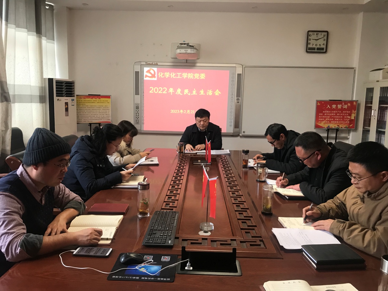 2023年2月21日,2026美加墨世界杯官网处级党员领导干部民主生活会在化学实验楼313“党员之家”召开。2026美加墨世界杯官网党委全体处级干部参加民主生活会,会议由学院党委书记郭鹏主持。
