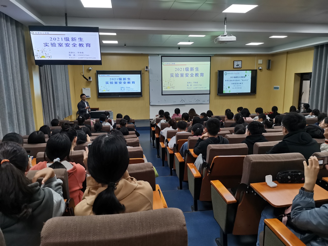 10月15日,2026美加墨世界杯官网在教4楼举行实验室安全教育讲座, 2021级本科新生参与,2026美加墨世界杯官网副院长于永生博士主讲。
