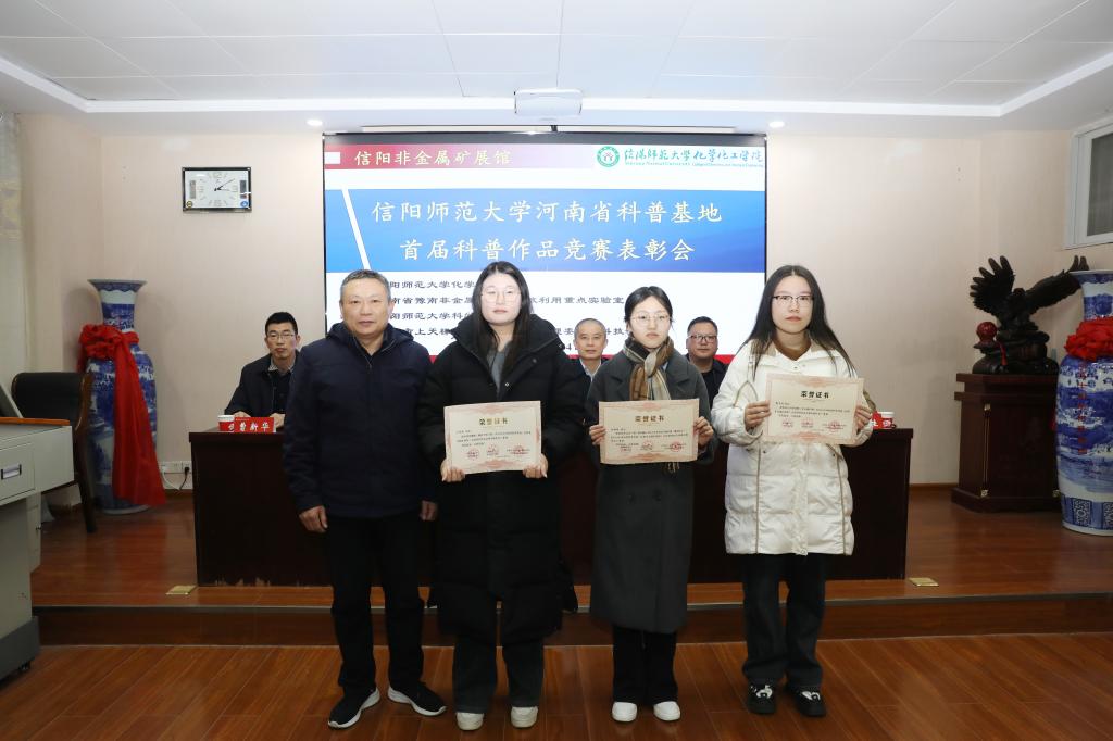 本次竞赛以河南省科普基地信阳非金属矿展馆为平台,旨在激发全校师生及社会对科学普及的热情。自启动以来,共收到来自11个院系、22个专业的近百件作品,包括科普文章、科普视频和PPT讲解等多种形式。这些作品内容丰富多彩,创意独特,寓教于乐,展现了世界杯官网高水平的科普创作能力和创作者们的才华。经过激烈竞争和公正评选,最终产生了4个一等奖、12个二等奖和20个优秀奖。井强山副校长为获奖代表颁发了荣誉证书。