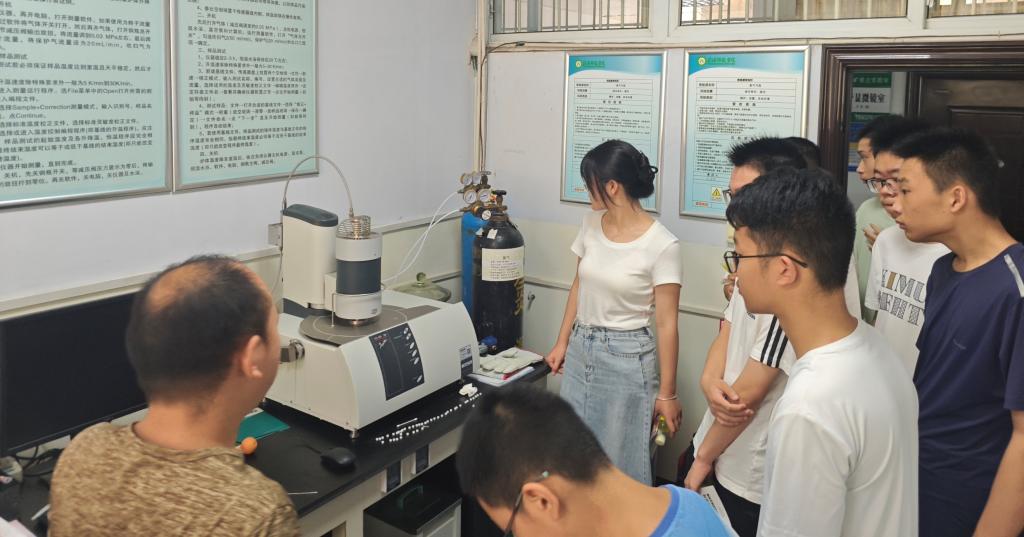 随后,大家一同来到二楼实验室,参观了扫描电子显微镜、能谱仪、X射线衍射仪等先进实验设备。讲解人员详细介绍了这些设备在矿物结构分析与材料性能研究中的重要作用,学生们近距离观察、认真聆听,纷纷为科学仪器的精密与研究工作的严谨所折服,切身感受到科学探索的魅力。