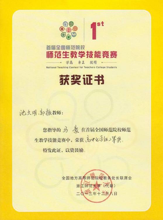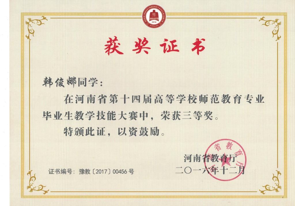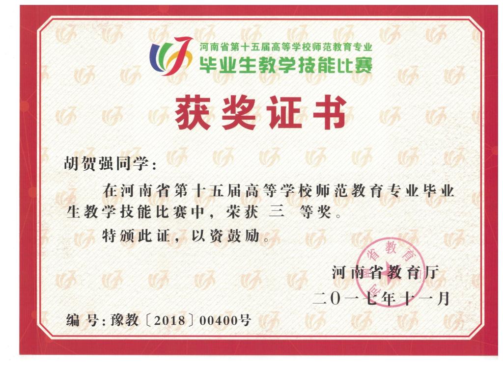 第十七届河南省师范教育专业的教学技能比赛二等奖——贺佳蓓