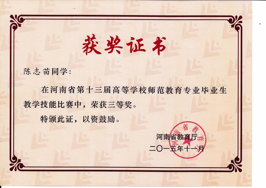 2015年河南省第十三届教师技能大赛三等奖——陈志苗